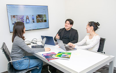 相談や提案もその場で確認。プロモーションを成功させるという一つの目的のために、役職や部署に関わらず、柔軟に話し合える環境があります。