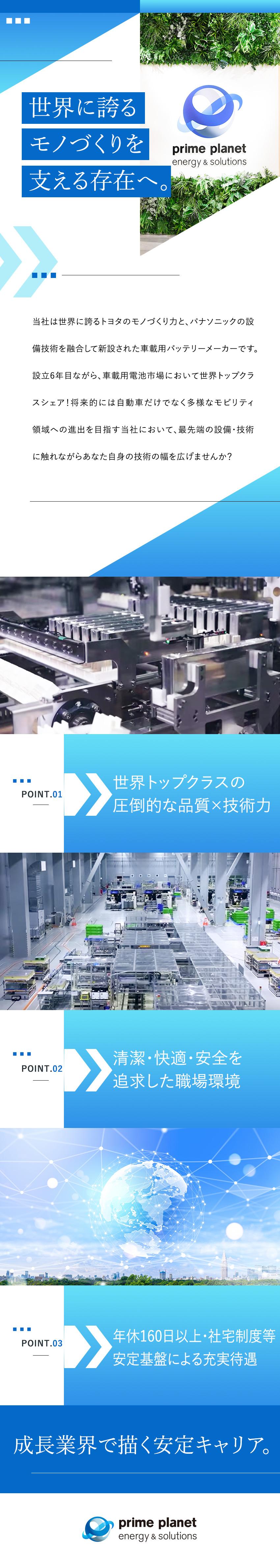 次世代電池の設備保全/年休160日以上/トヨタxパナソニック