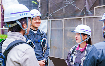 担当するのは、人手不足で悩んでいる工事現場の事務作業や管理業務などのサポート業務。直接、クライアントや職人、現場の責任者とコミュニケーションを取って業務を調整することも多く、円滑な進行に貢献していくポジションです。自分が携わっている建物が徐々にカタチになり、完成した瞬間の嬉しさは格別。やりがいを感じながら経験を積み、段階を踏んで施工管理へのキャリアを築いていけることも、大きな魅力の一つです。