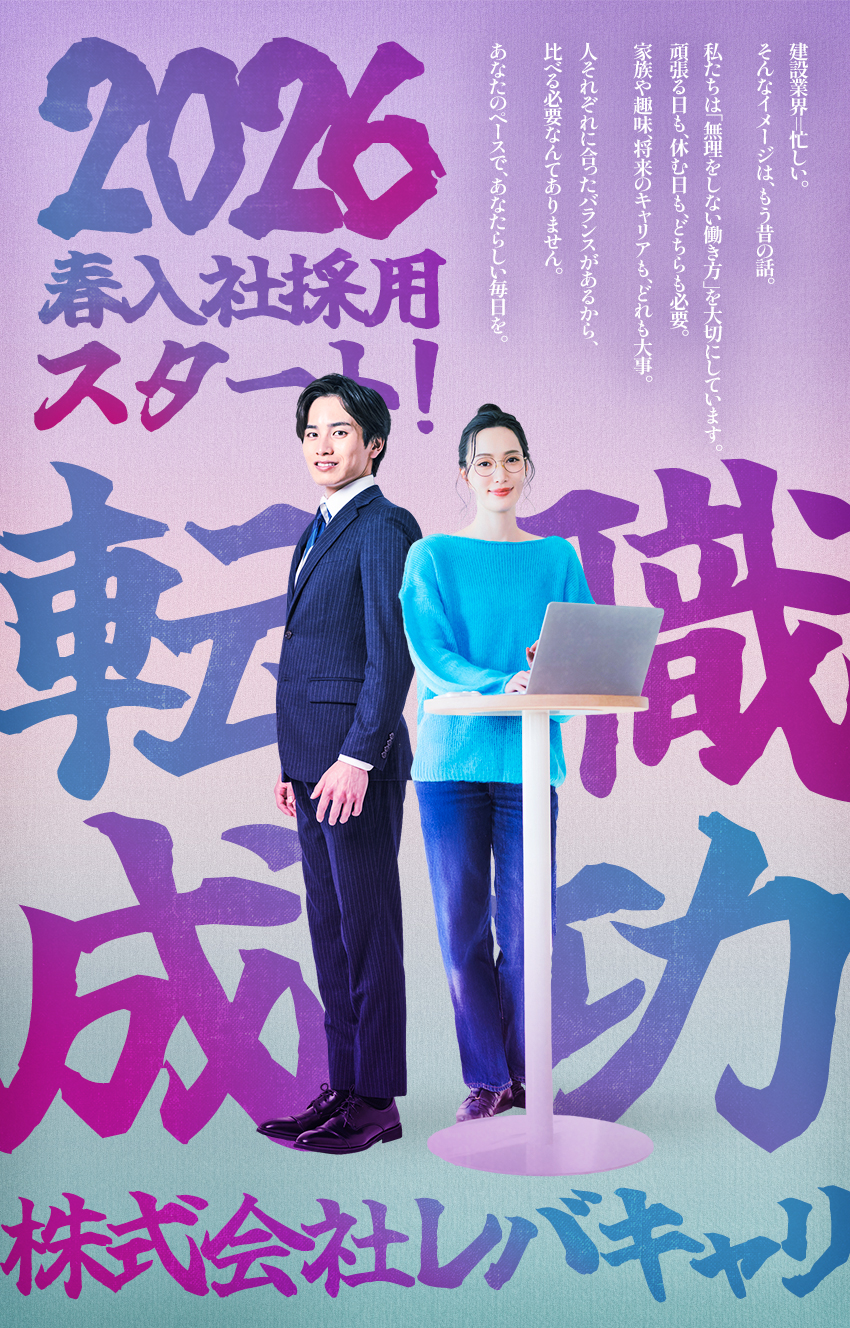 建築業界の長時間労働と人手不足を解消するために2023年6月に設立されたばかりのレバキャリ。設立からまだ間もない企業ですが、長く安心して働くことができる環境を叶えるべく、働き方改革”に力を入れております。