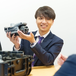 産業用ドローンを扱い、販売代理店向けのルート営業を担当しています。現地に営業・技術と同行して提案したり、機能説明イベントを行ったりと、代理店の販売促進まで含めて幅広いサポートする役目を担っています。