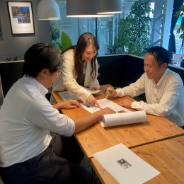 ★打ち合わせ風景のひとコマ。設計・開発チームと意見を交わしながら、ひとつの空間を創り上げていきます