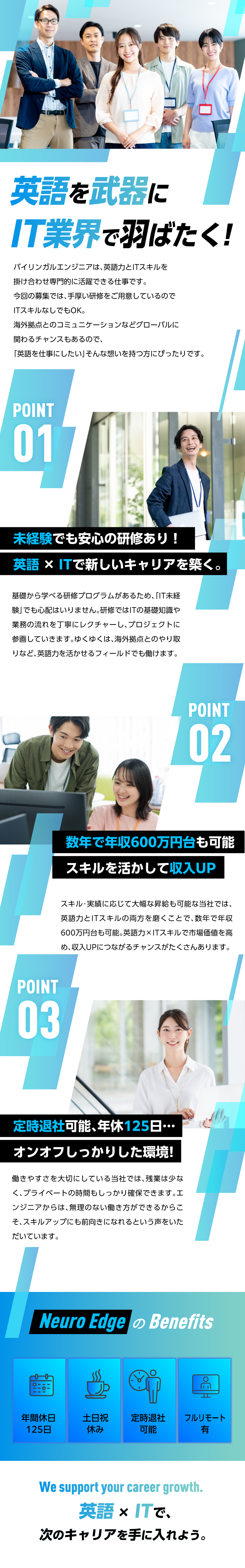 バイリンガルエンジニア/英語力を活かす/年収600万円可能