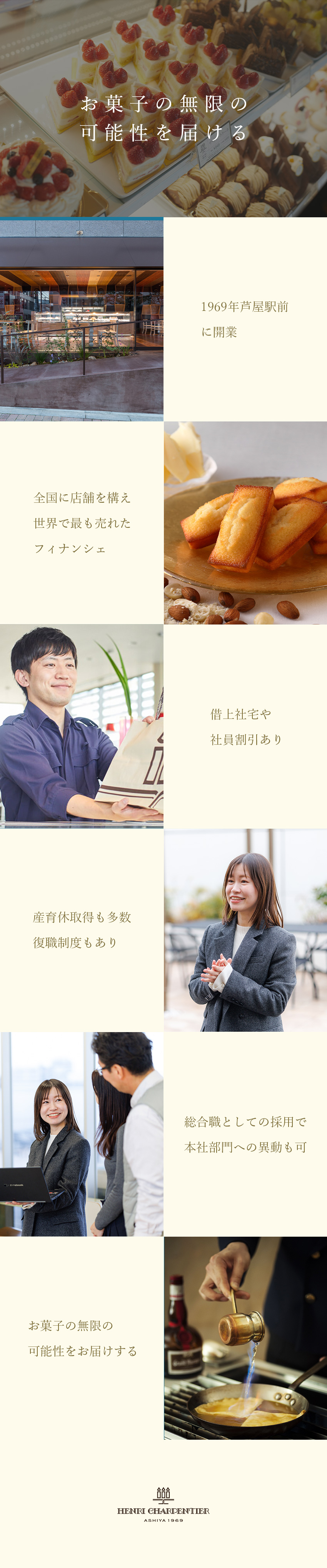 アンリ・シャルパンティエなど百貨店を中心に展開する洋菓子店での接客・販売や店舗運営業務