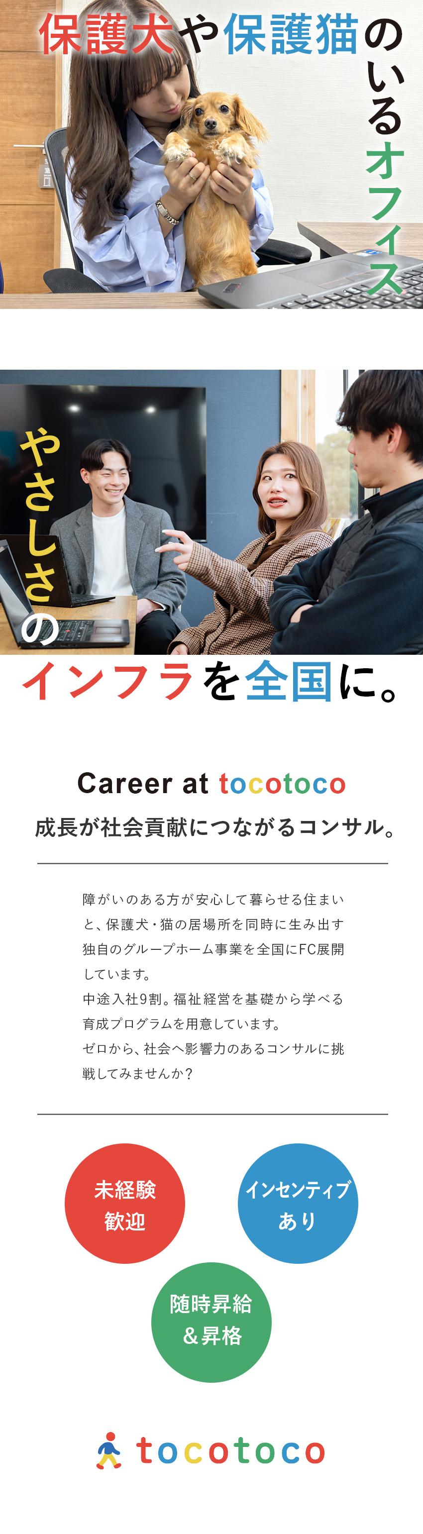次世代のインフラ企業として、保護犬や猫と共生できる障がい者向けグループホームを全国2000施設以上展開している当社。
