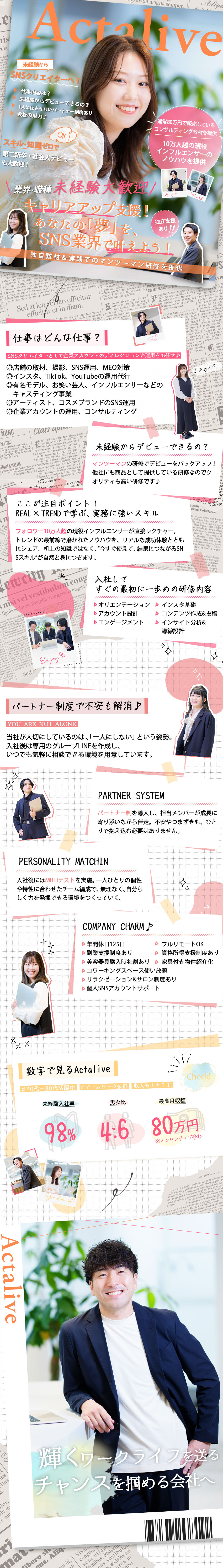 1人1人合わせた研修制度で未経験からSNSクリエイターへ!