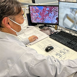 積算チームは、部長(50代)、取締役、勤続年数の長いベテラン社員で構成されています。少数精鋭だからこそ、日々のやり取りはとても密。わからないことがあれば、その場で声を掛け合い、立場に関係なく意見を出し合える関係性が築かれています。