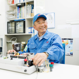電気や機械の基礎・基本の研修に加え、電気部品の習得キットを使った研修や、イレギュラー対応事例の勉強会を実施。