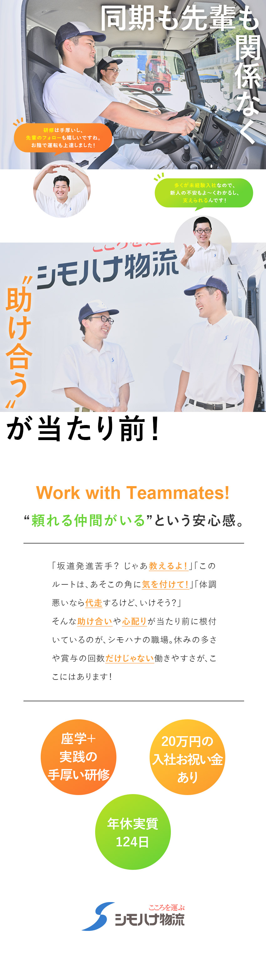 入社祝金あり!大手食品ルート配送/月9~10日休/賞与年3回