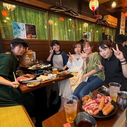 2024年8月の全体ミーティング後の飲み会の様子。社員の発案で度々レクリエーションが開催されます。