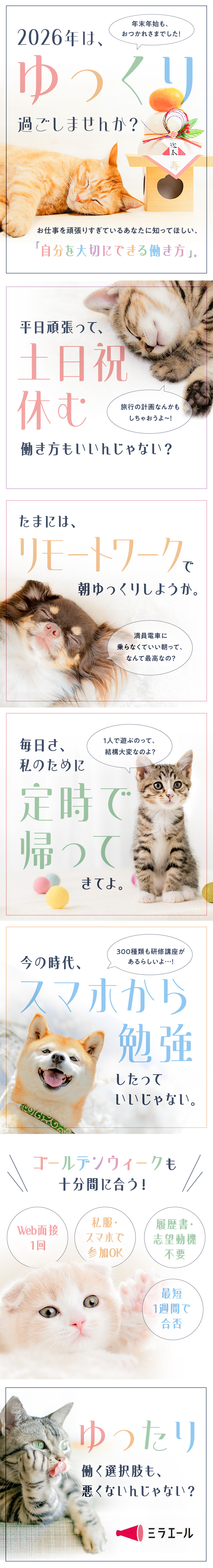 【未経験の方・第二新卒積極採用中♪】<プライベートも大切にしたい方>高卒以上/選考はWeb面接1回