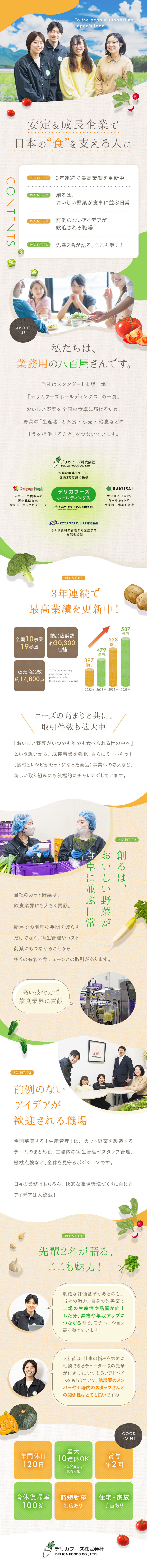 カット野菜の生産管理/未経験歓迎/最大10連休可/住宅手当有