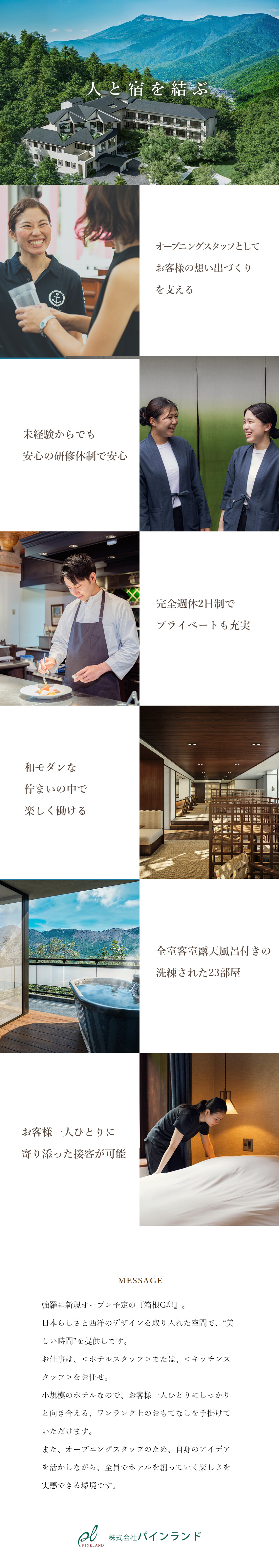 ホテルのオープニングスタッフ/未経験歓迎/完全週休2日制
