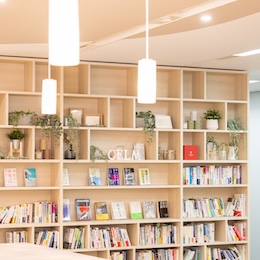 スタッフが自由に利用できるライブラリコーナーもあります!