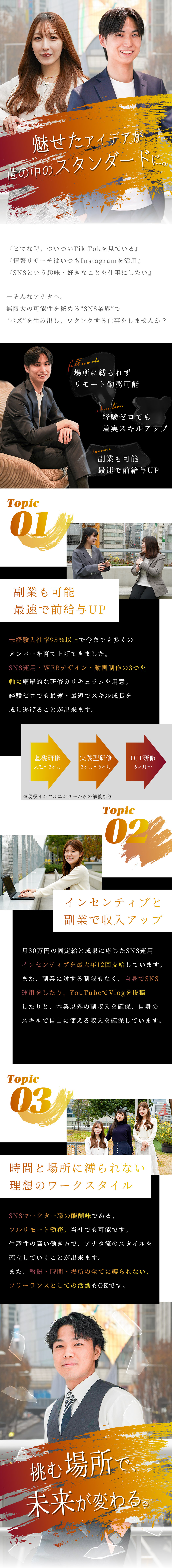 SNSマーケター/フルリモート可/未経験歓迎/月30万円~!