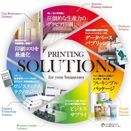出版グラビア印刷、オフセット輪転印刷、個別情報印刷、製本・メーリング、ビジネスフォーム印刷とOCR・バーコード、シール・ラベル、軟包材印刷