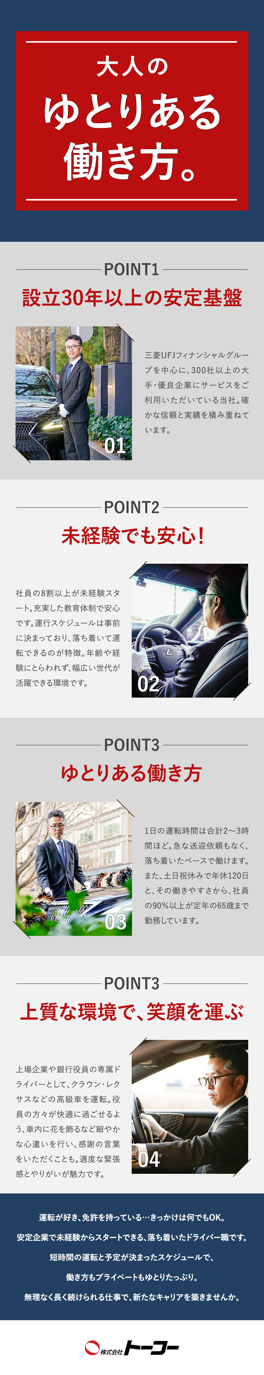 未経験から始める役員専属ドライバー/年休120日/賞与年2回