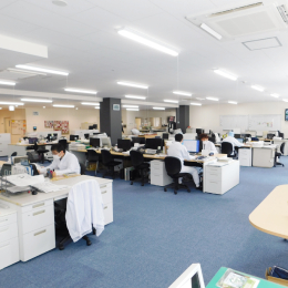 オフィスワークは全部署がワンフロアに集まっており、必要なコミュニケーションはスグに取れる環境です。