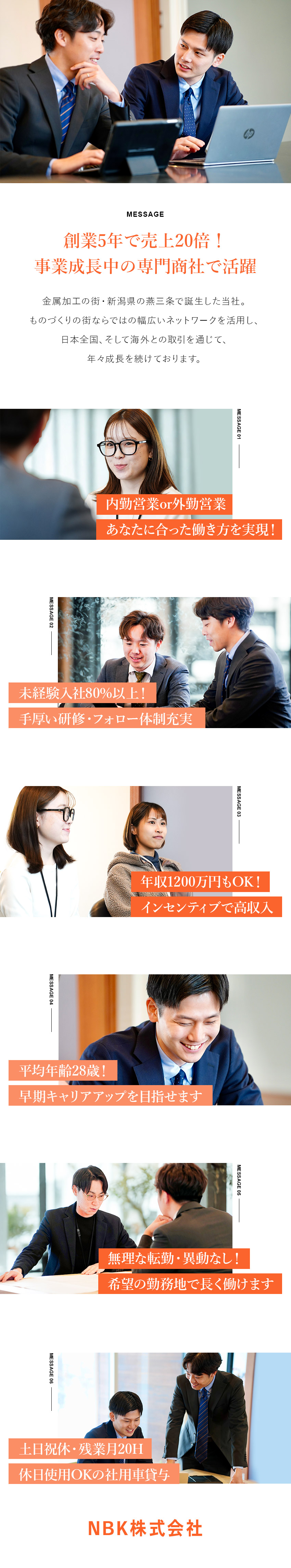 専門商社の内勤・外勤営業/未経験歓迎/年休120日/転勤なし