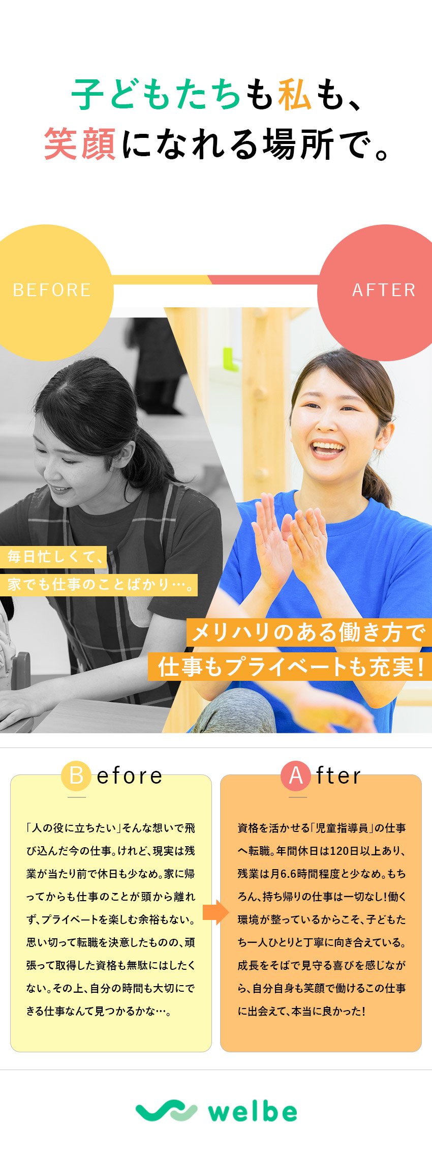 子どもの成長を支える児童指導員/未経験歓迎/年間休日120日
