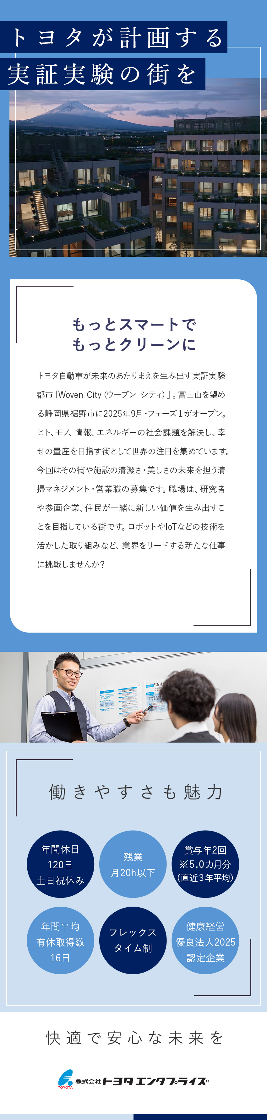 『Toyota Woven City(ウーブン シティ)』の清掃マネジメント・営業/業界未経験OK