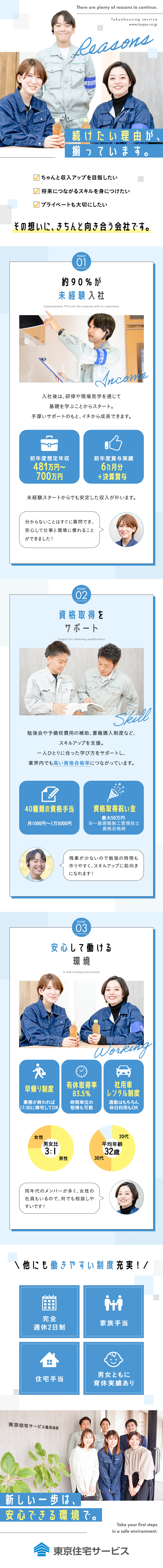 「前職も建築業界で働いていましたが、働き方が大きく変化しました。休みが取りやすく、現場が近いので通勤の負担が少ないことも魅力です。頑張りがきちんと評価され、収入面でも満足しています」(Sさん/入社2年目/26歳)