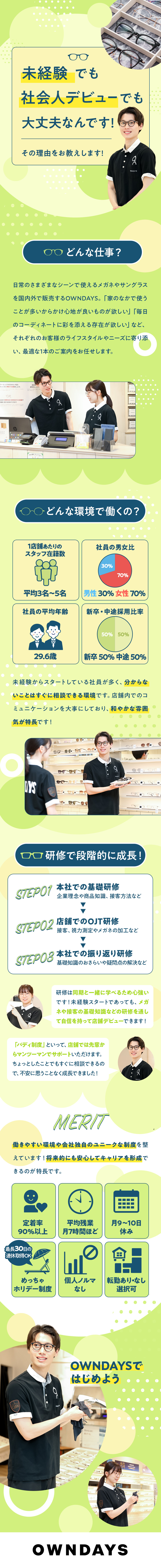 NEW締切間近【首都圏】メガネコーディネーター/OWNDAYS店舗の接客担当◆第二新卒・未経験歓迎/個人ノルマ無