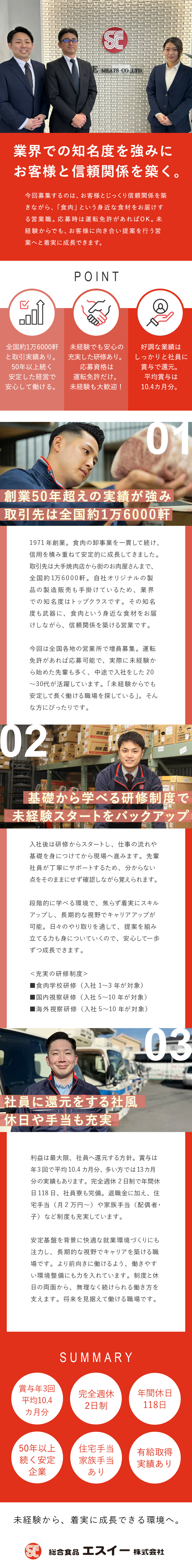 食品のルート営業/賞与10.4カ月分/未経験歓迎/住宅手当有