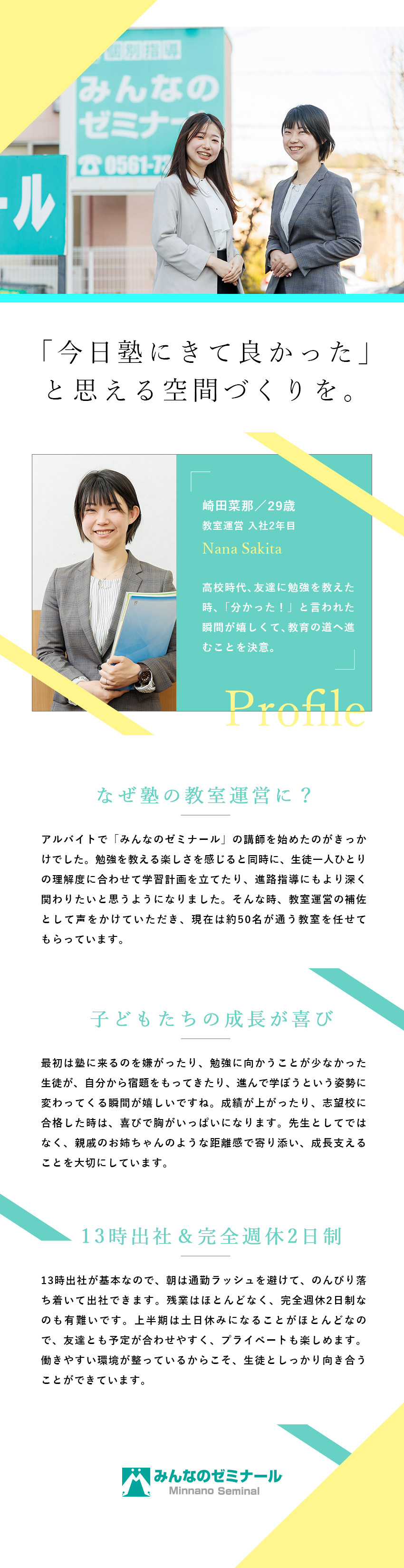教室運営/未経験歓迎/13時出社/完休2日制/残業ほぼナシ