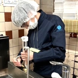 入社後は定期メンテナンスの現場に同行し、節水装置がどんなものかを学ぶ基礎固めからスタート。
