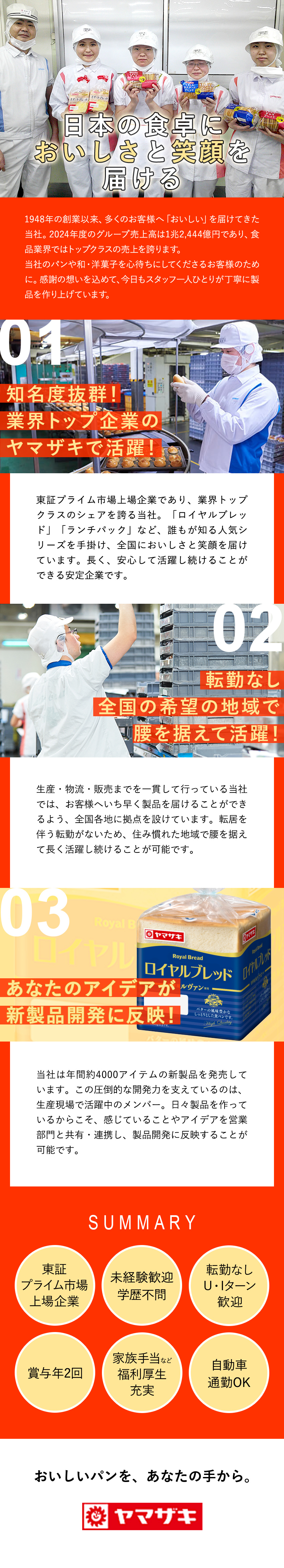 主食としての役割はもちろん、バラエティ豊かなおいしい製品で人々の生活をより豊かにできることが同社の強み。その中でも製造に関わるポジションは社会貢献性の高い仕事であり、誇りを持って取り組むことができるでしょう。