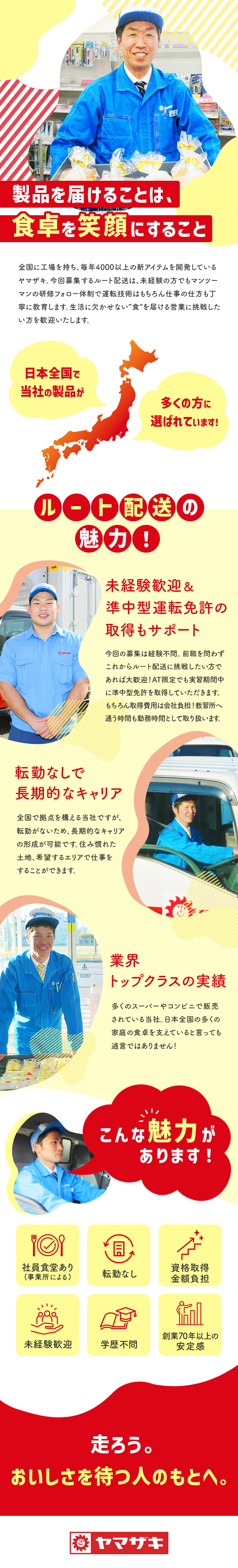 ルート配送/未経験歓迎/月収39万円可/転勤無/選べる勤務地