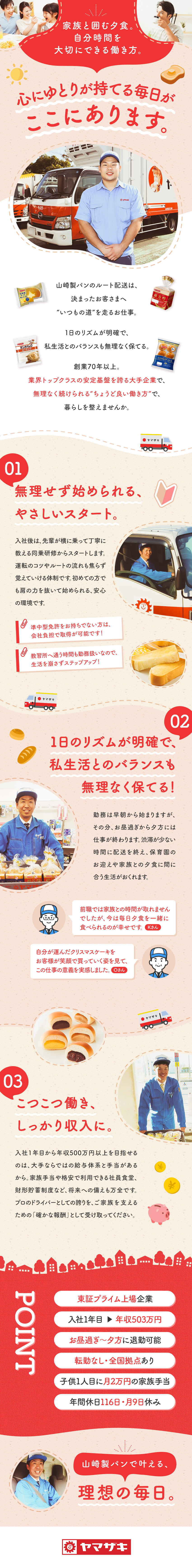 ヤマザキのルートドライバー/未経験歓迎/賞与年2回/安定環境