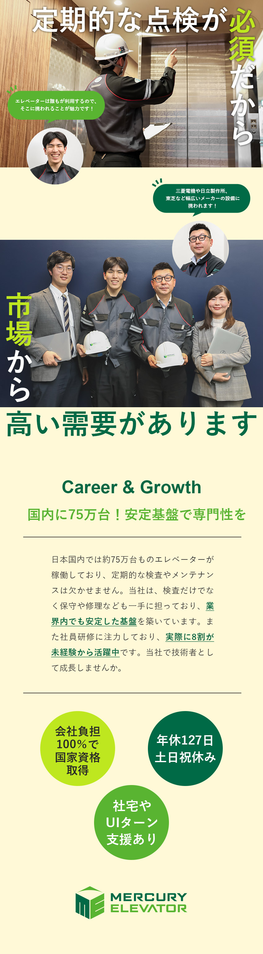 メンテナンス/8割未経験/年休127日/国家資格取得支援