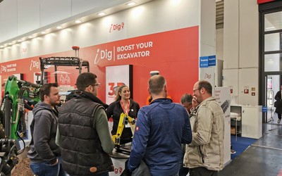 重機の掘削作業をセンサーで測り、画面上にガイダンス表示するシステム。簡単に高精度施工ができ、現場の効率化に貢献し、人手不足の現場を支える技術です。