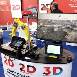 重機の掘削作業をセンサーで測り、画面上にガイダンス表示するシステム。簡単に高精度施工ができ、現場の効率化に貢献し、人手不足の現場を支える技術です。