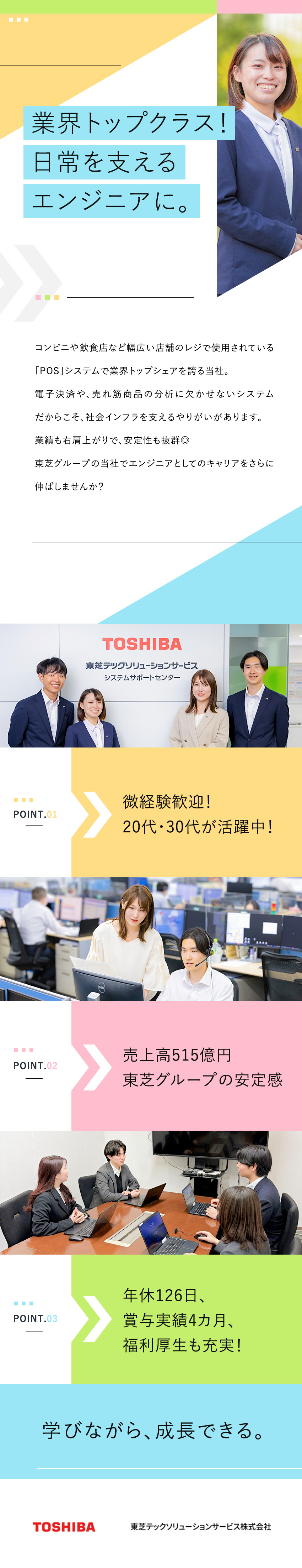 NEW【社内の技術支援エンジニア】東芝グループ◆業界トップシェアのPOSレジ◆福利厚生・教育体制充実