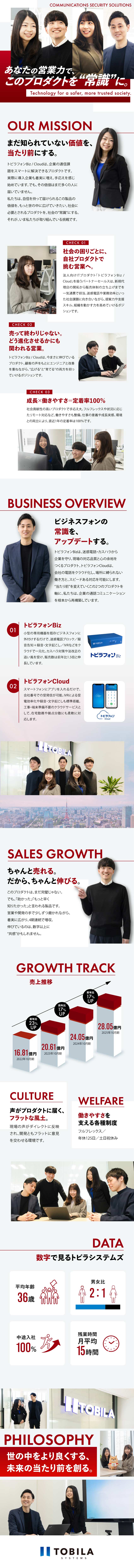 カスハラ対策を求める法改正の流れや、PBXのクラウド移行といった社会的潮流を追い風に、「トビラフォンBiz」「トビラフォンCloud」で法人の通話DXを推進。社会の安心を守りながら企業の成長を後押しする取り組みです。