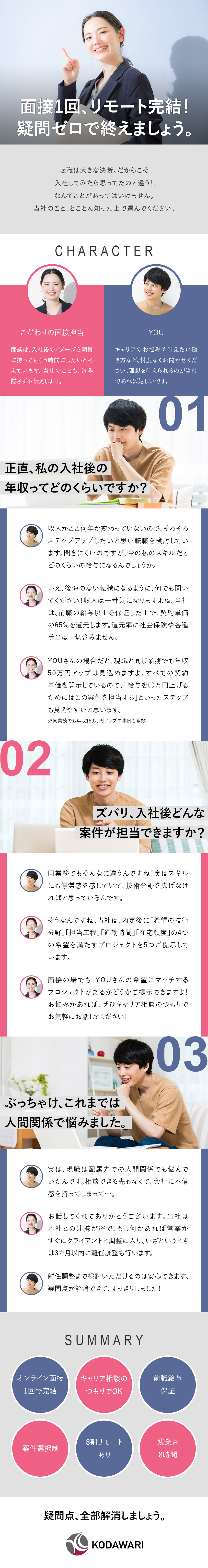 ITエンジニア/面接1回/技術相談は10分で解決/案件選択制