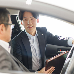 「家族が増えたから買い替えたい」「最新の車に興味がある」「娘の車を買いたい」など、車を購入する理由はさまざまです。お客さまの理想の暮らしに寄り添い、関係を築くことを大切にしています。お客さまと長期にわたって関係性を築いていける仕事です。