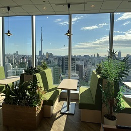 東京本社のカフェがリニューアル。オシャレで解放感のあるカフェです。