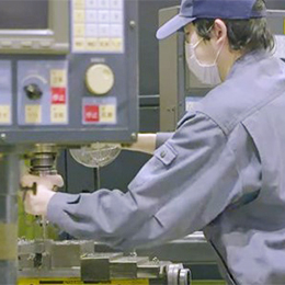 前職はレストラン勤務。モノづくりに携わりたいと考えて当社に転職して来ました。現在は金型製作に携わっています。手がけた製品をドラッグストアで見かけることも多く、そんな時はまわりの人に自慢したくなります。