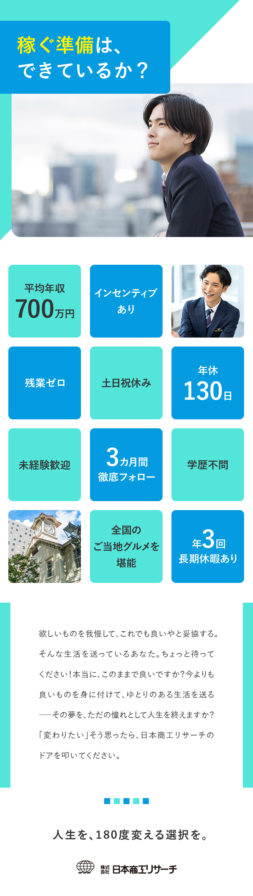 営業/未経験歓迎/年休130日/残業なし/平均年収700万円