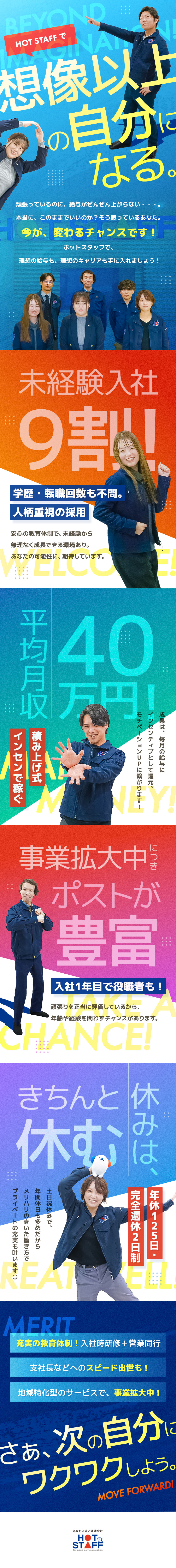 『ホットスタッフでは、社員の9割が未経験からスタート。私も、営業未経験で入社しましたが、入社数年で支社長を経験後、現在は広島エリアの支社を統括するエリアマネージャーを任されています!』