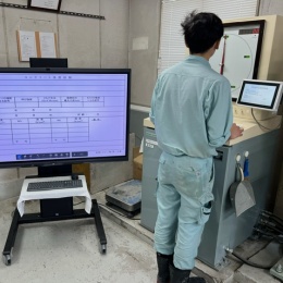 生コンの原材料は気温や湿度などによって品質に変わるため、状態を検査し、データをチェックしながら最適な配合を行います。