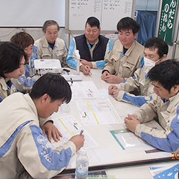 朝礼後には、当日の作業計画を共有。チームワークを大切に業務を進めます。