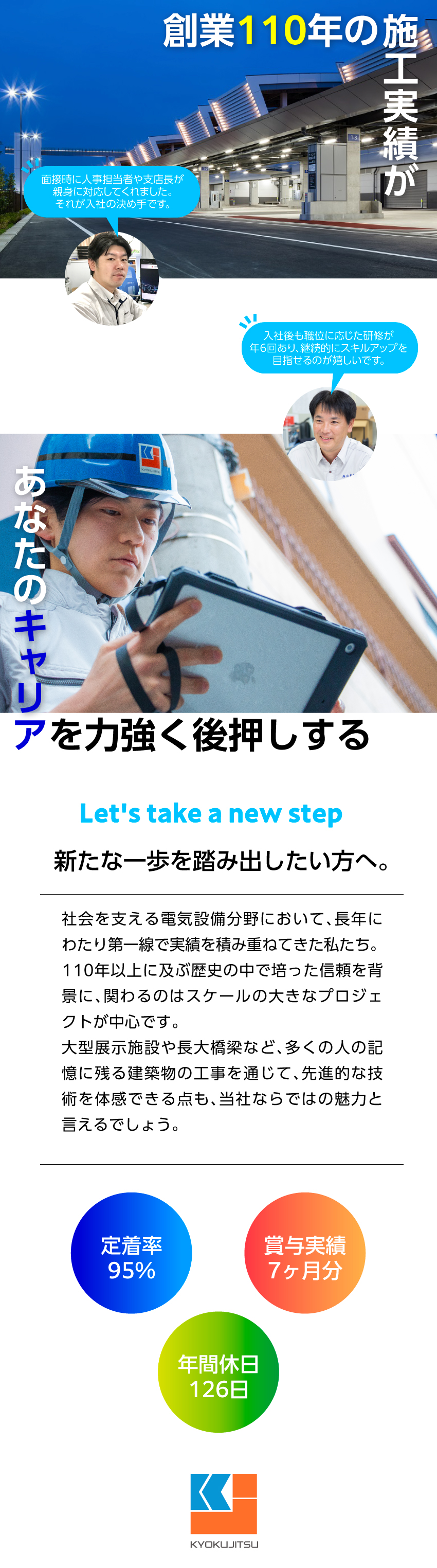 電気設備工事の施工管理/年休126日/賞与実績7カ月分