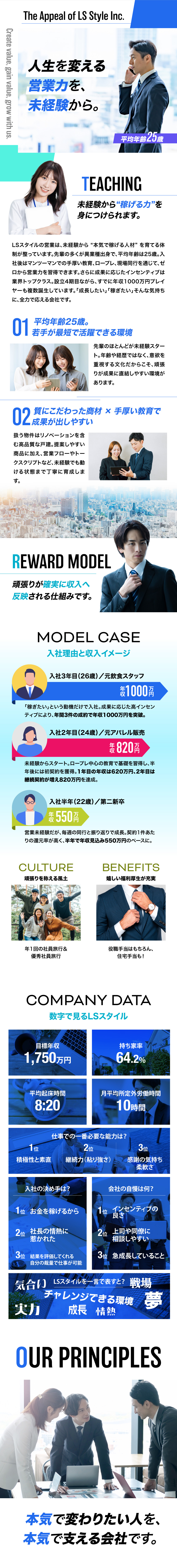 2022年に誕生したLSスタイルは、若手中心の会社ながら事業規模を着実に広げています。新築戸建ての販売を中心に、お客様の住まい探しをトータルで支援し、わずかな期間で大きな成果を上げています。