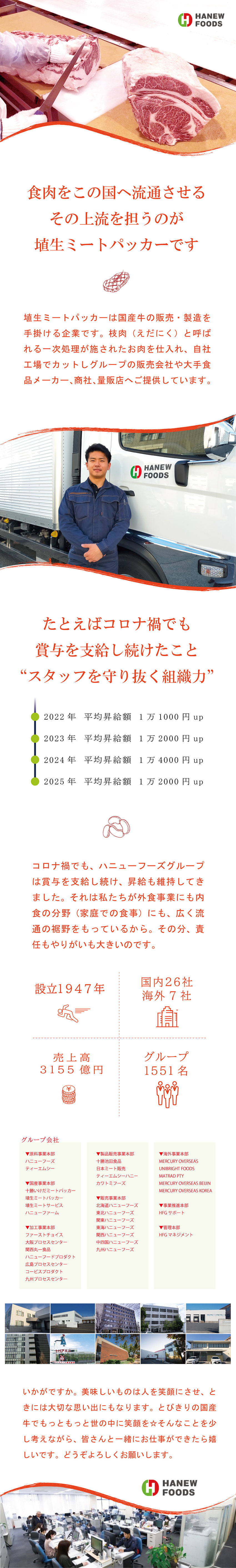 食肉の大手!早朝開始で14時定時の営業/応募者全員面接