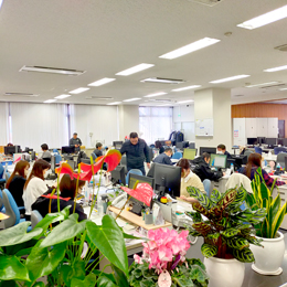 お花とオフィス風景。様々な業界から転職者に来て頂いてます。